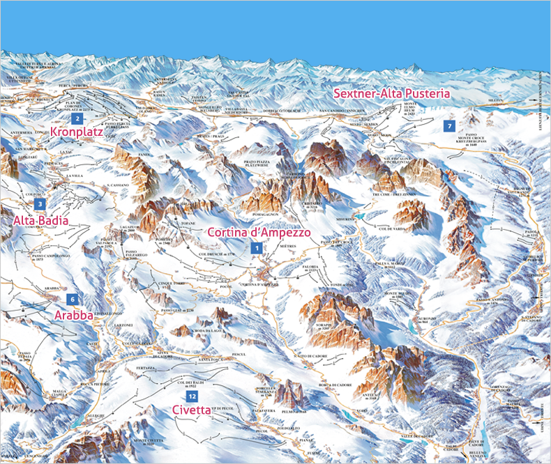 µ¹·Î¹ÌƼ´Â ÇöÁ¸ÇÏ´Â ¼¼»ó¿¡¼ °¡Àå Å« ½ºÅ° Áö¿ªÀÌ´Ù. ½½·ÎÇÁ ÃÑ ±æÀ̰¡ 1,200km¿¡ ´ÞÇϸç 16°³ÀÇ Áö¿ªÀÌ ¸ð¿© µ¹·Î¹ÌƼ¸¦ ÀÌ·ç¸çÀÖ´Ù. ÀÌ Áß 9°³ÀÇ ½ºÅ° Áö¿ªÀº ¸®ÇÁÆ®³ª °ïµ¹¶ó·Î ¿¬°áµÇ¸ç 2009³â À¯³×½ºÄÚ ¼¼°è ¹®ÈÀ¯»ê¿¡ µî·ÏµÇ¾ú°í À¯¸í¼¼¸¦ Ÿ°í Àִ ȯ»óÀûÀÎ Æ®·¹ÀÏ ÄÚ½º, Á©¶ó·Ð´Ù(Sella Ronda)°¡ ÀÖ´Â °÷ÀÌ´Ù.
